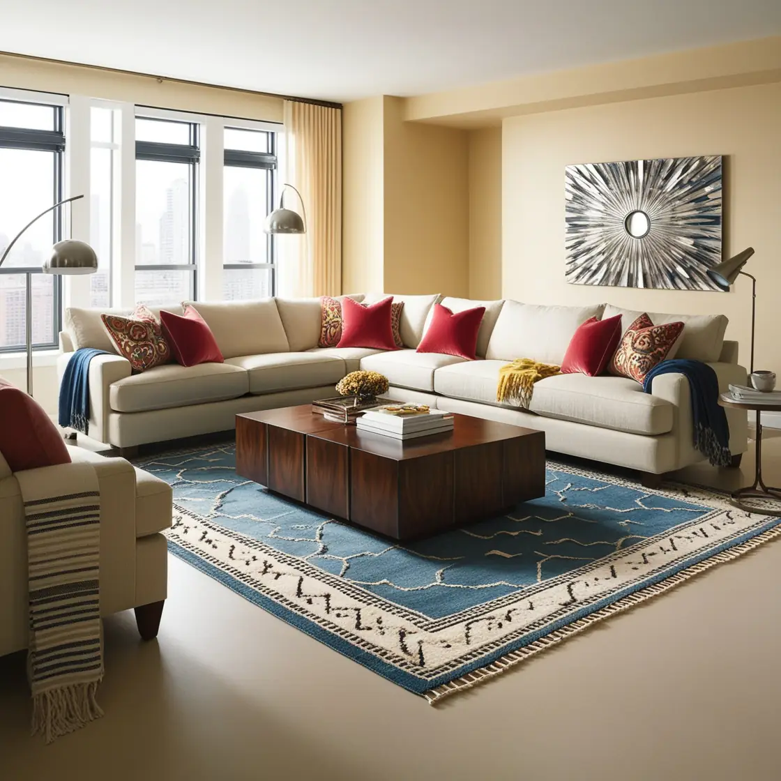 O uso de tapetes, cortinas, almofadas e obras de arte garante uma transformação significativa no espaço sem causar danos ou demandar alterações estruturais.